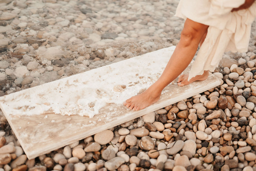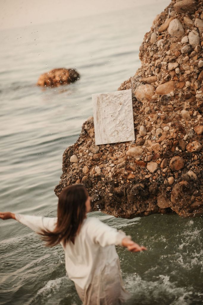 Anche la scelta di certi materiali esprime la volontà di rimanere legata al contesto naturale e devota all’elemento acqua, forza vitale che, sia in qualità di pensiero che mezzo di realizzazione, si conferma primaria nella genesi delle sue opere.