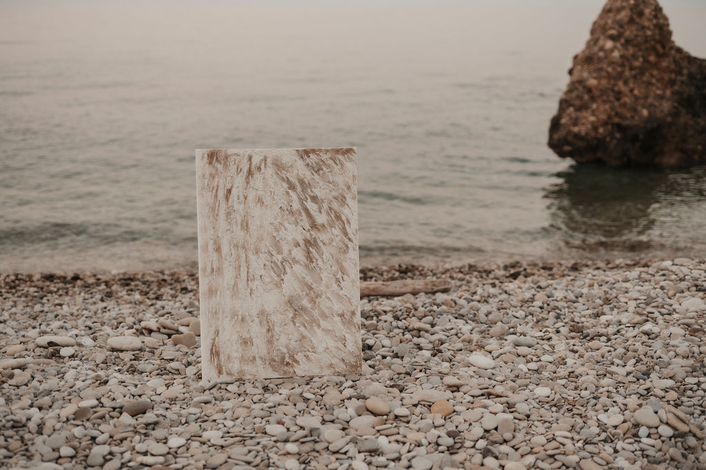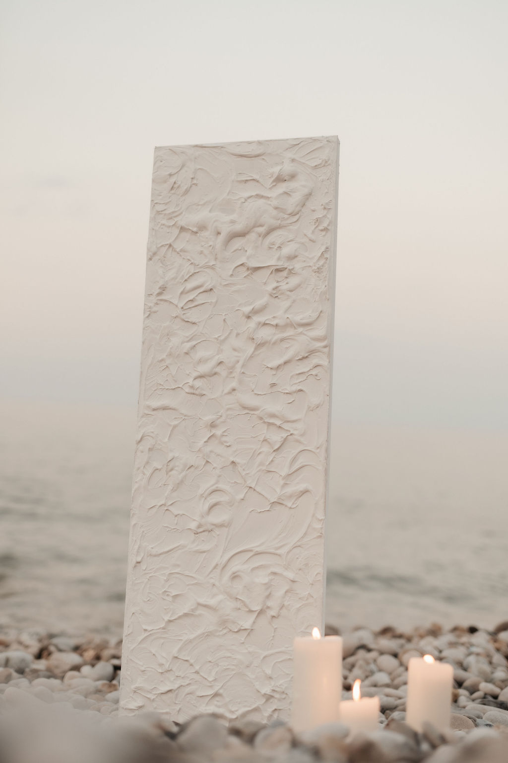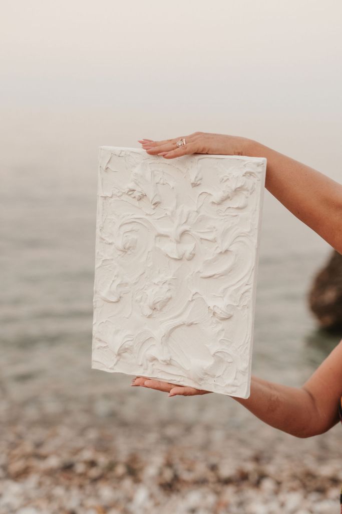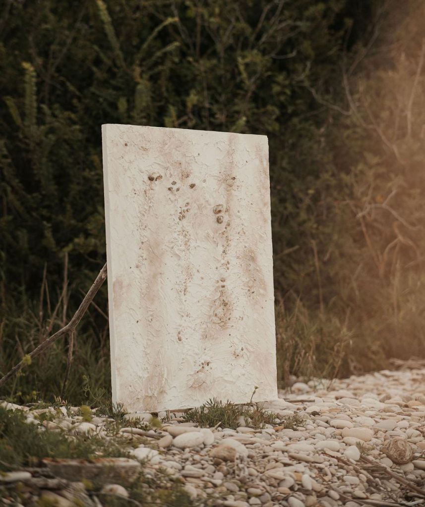 Puro è il nome della sua prima collezione: una serie di opere “impastate” di gesso ed acqua di mare, sale e frammenti di rocce. Questa serie è dedicata alla sua prima figlia da cui trae forza ed ispirazione.